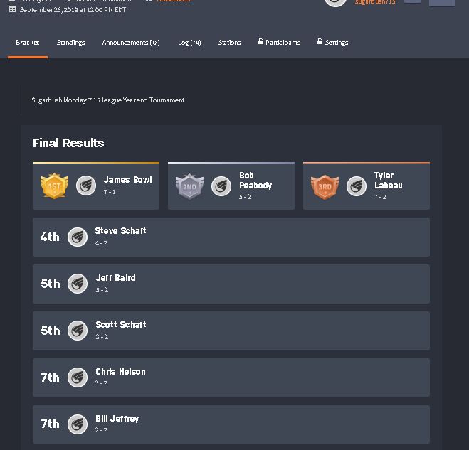 2019 Tourney James Bowl (top winners)